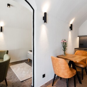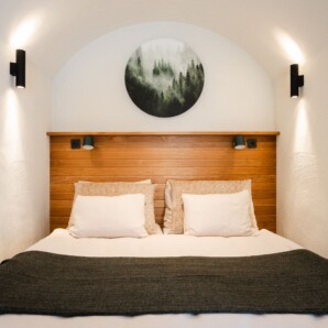Sviitide sees ootab külalisi läbimõeldud põhjamaine mugavus – kööginurk, hubane elutuba, vannituba ja privaatne saun, mille akendest avanevad imelised vaated ümbritsevale metsale ja Lapimaa küngastele. Pehme valgustus, looduslikud materjalid ja soojad toonid loovad õhkkonna, mis kutsub aeglustama ning rahu nautima.